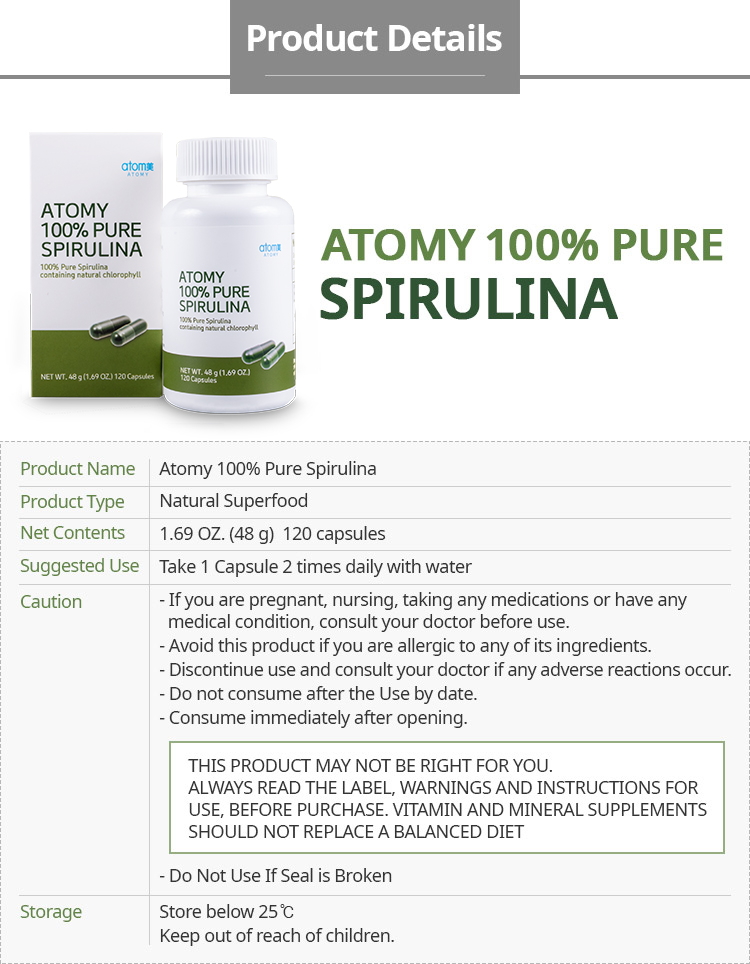 100% Pure Spirulina (120 Capsules)